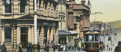 The Dunedin Public Art Gallery holds in its collection sixteen granite columns recovered from the 1888 AMP Society Building, that stood on the corner of Princes and Dowling Streets, central Dunedin.